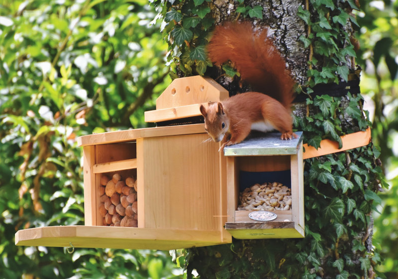 - Eichhörnchenhäuser bieten eine Futterstelle oder eine Brut-/Schlafmöglichkeit